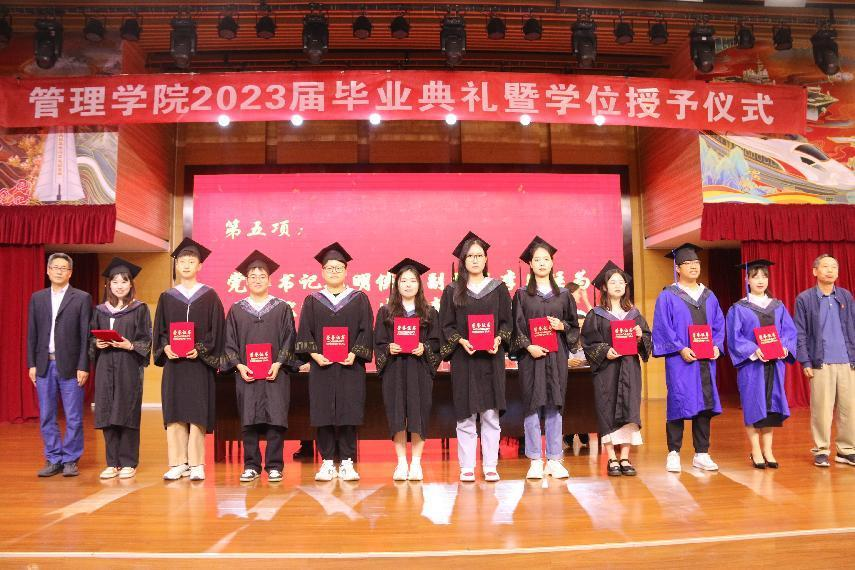 关于表彰2023届优秀毕业生的决定》。党委书记魏明侠、院长杨艳萍、副院长李凤廷分别为受表彰的学生代表颁发荣誉证书并合影留念。
