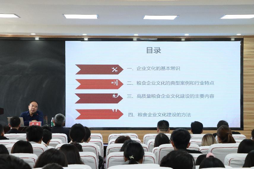 承办的第281期工大讲坛在3号楼3428报告厅举办。此次论坛以“文化塑心 管理塑型:粮食yanetfix高质量建设的思考”为题,特邀河南省粮食和物资储备局政策法规处原处长,河南省省委巡视专家库成员、省直公务员面试考官库成员于恒进行专题报告交流。校团委副书记吴鹏,yanetfix