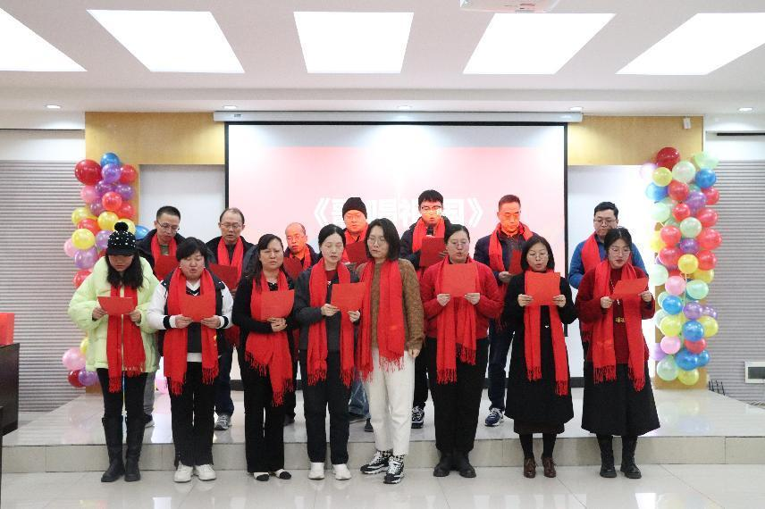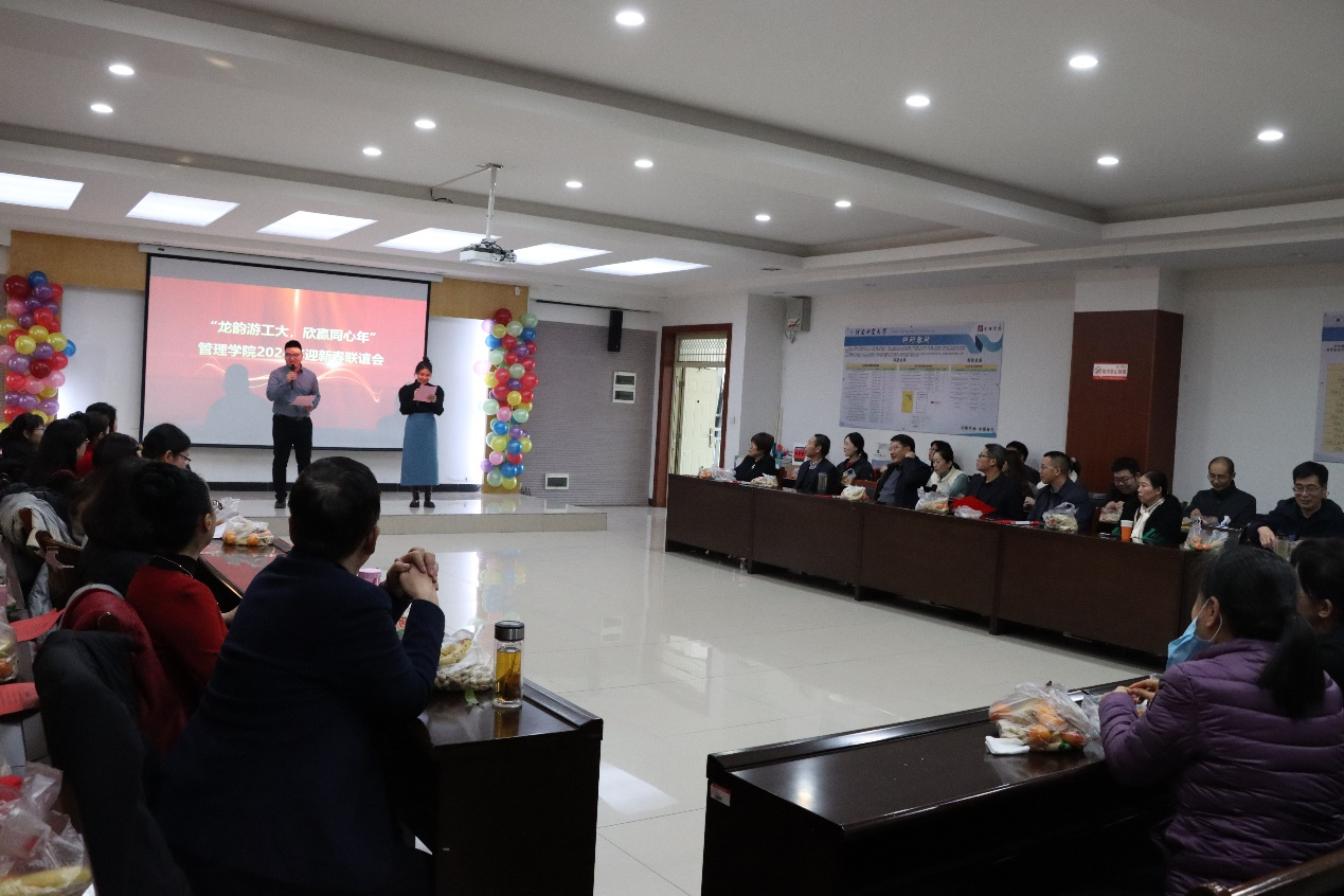 班子成员与全体教职工欢聚一堂,载歌载舞,共忆精彩往昔,同迎新春佳节。晚会由李景理、郑媛媛老师主持。