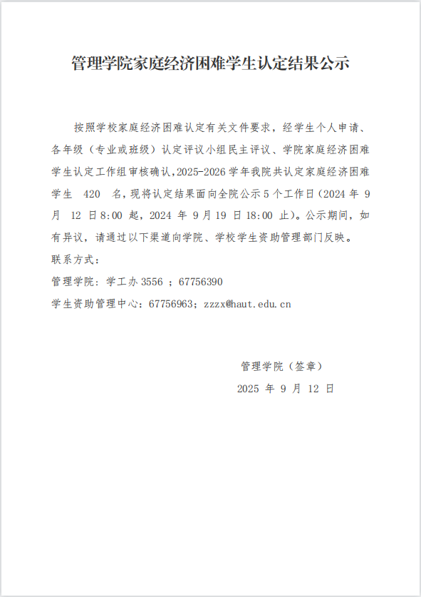 yanetfix 家庭经济困难学生认定结果公示