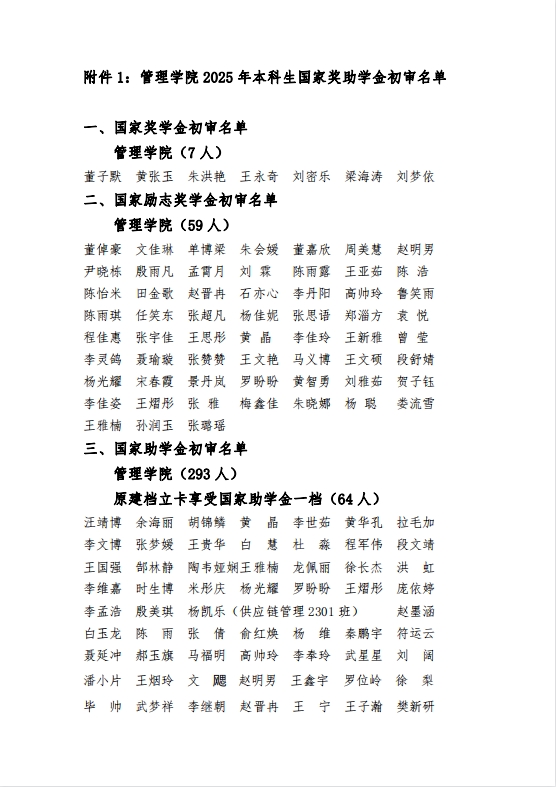 yanetfix 2025本科生国家奖助学金初审名单