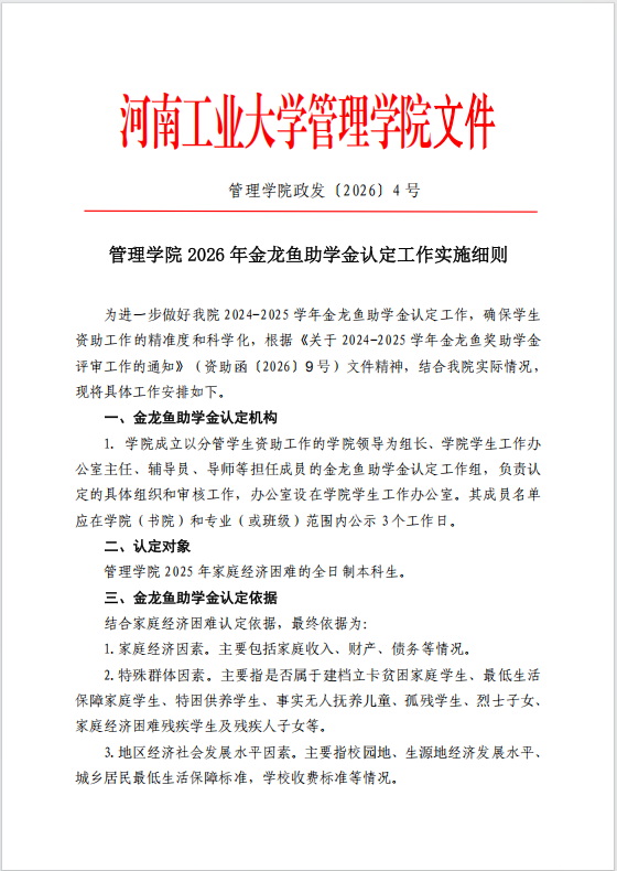yanetfix 2026年金龙鱼助学金认定工作实施细则