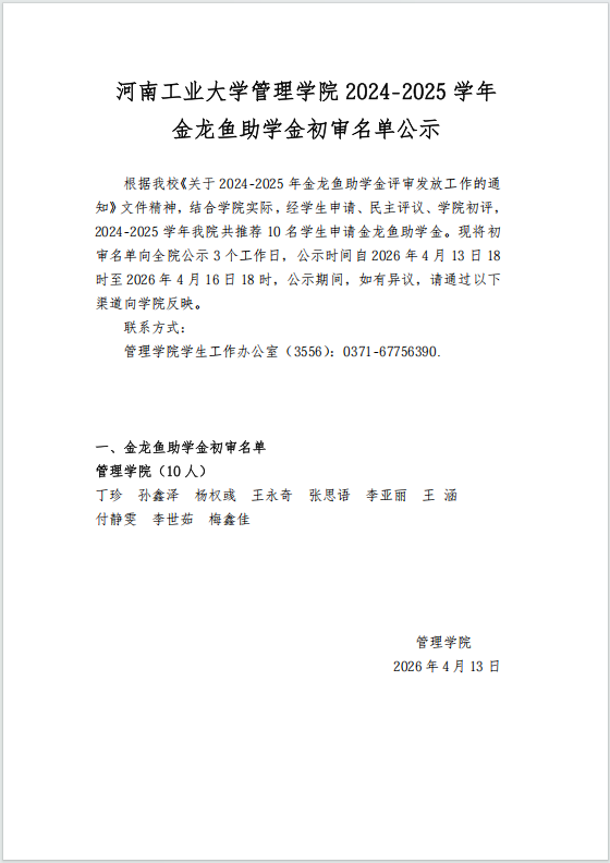 yanetfix 2024-2025学年金龙鱼助学金初审名单公示