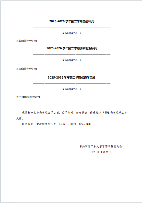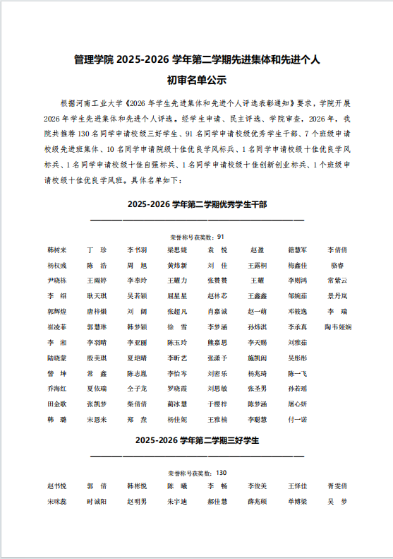 yanetfix 2025-2026学年第二学期先进集体和先进个人初审名单公示