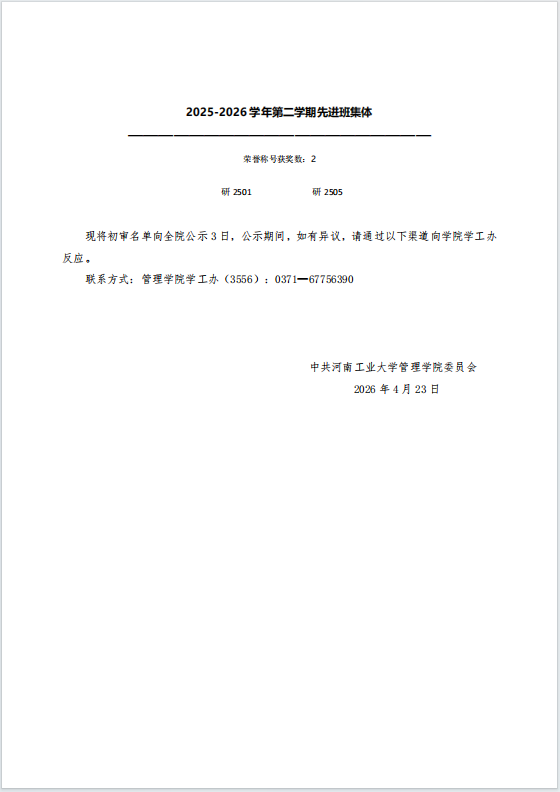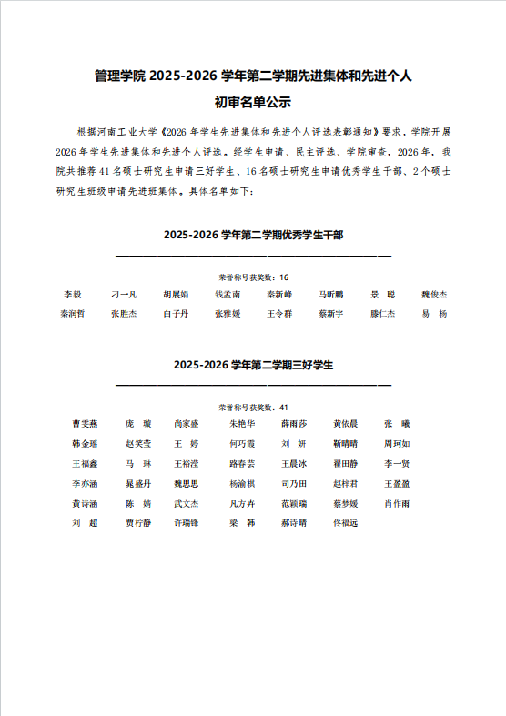 yanetfix 2025-2026学年第二学期先进集体和先进个人 初审名单公示