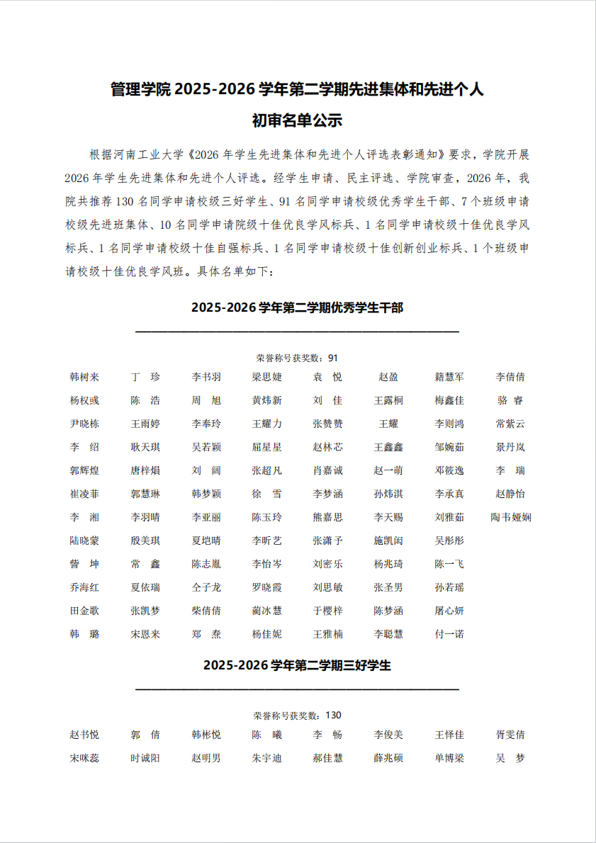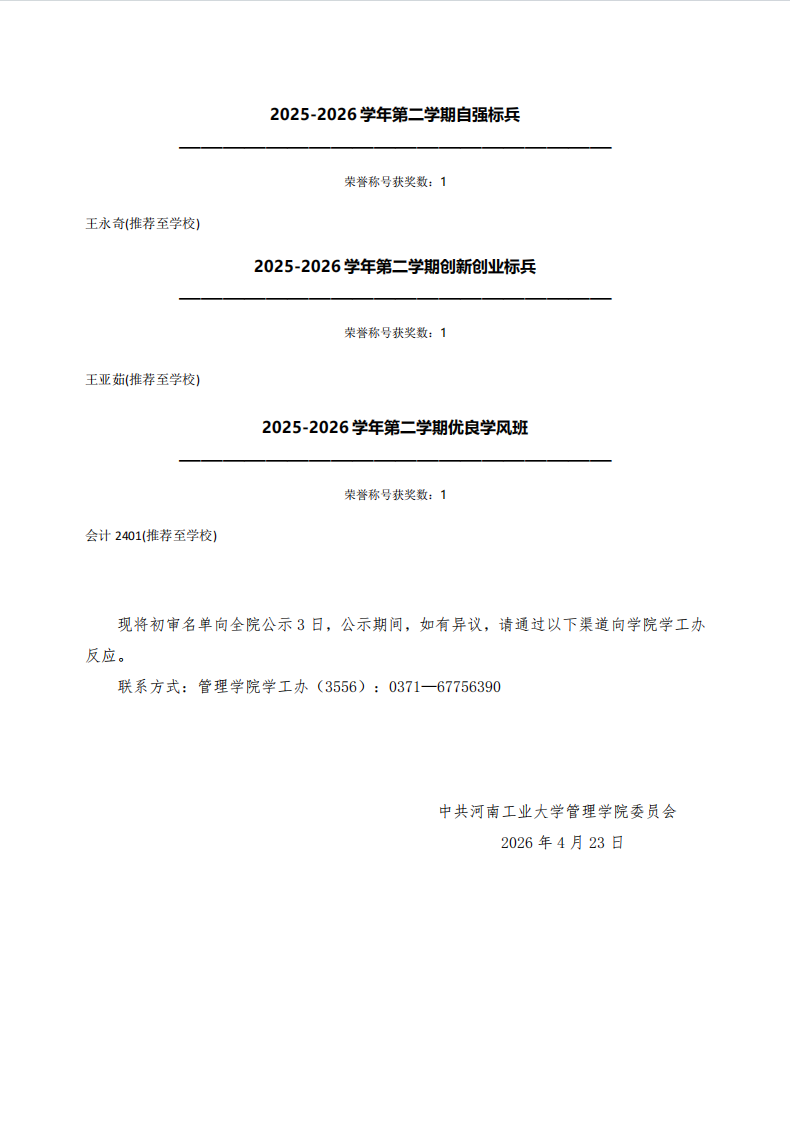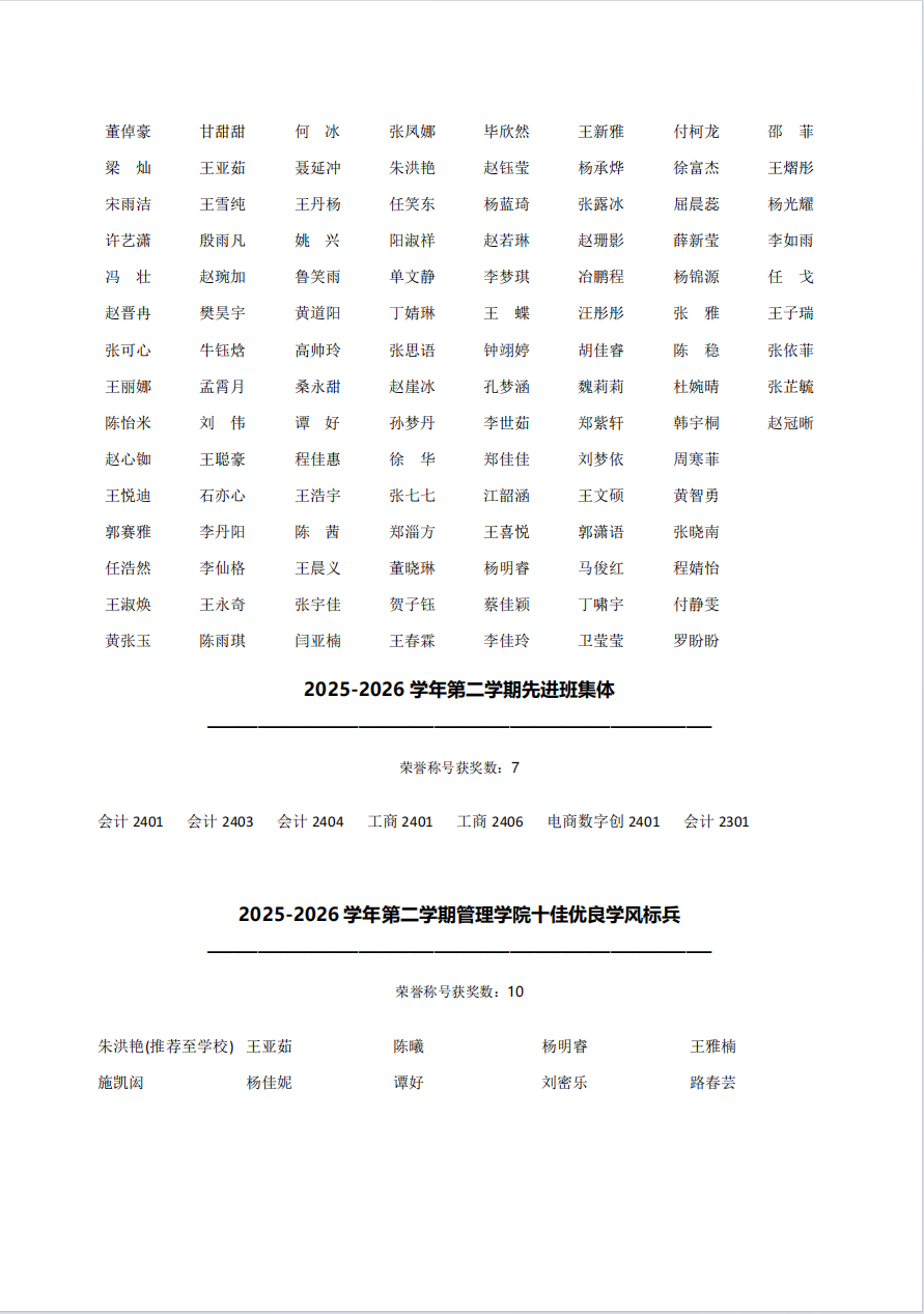 yanetfix 2025-2026学年第二学期先进集体和先进个人初审名单公示