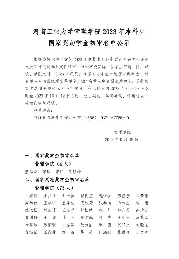 yanetfix 2023年本科生国家奖助学初审名单公示