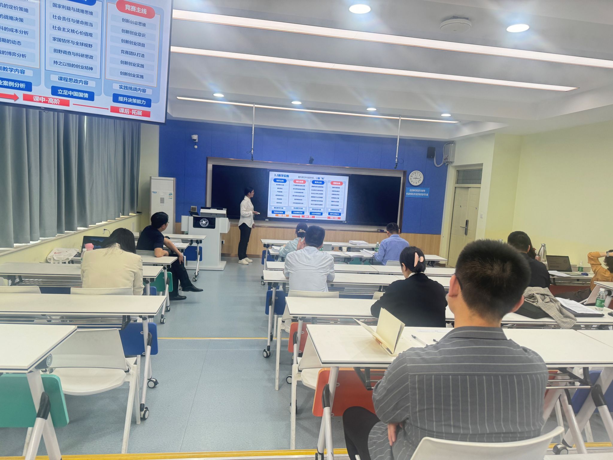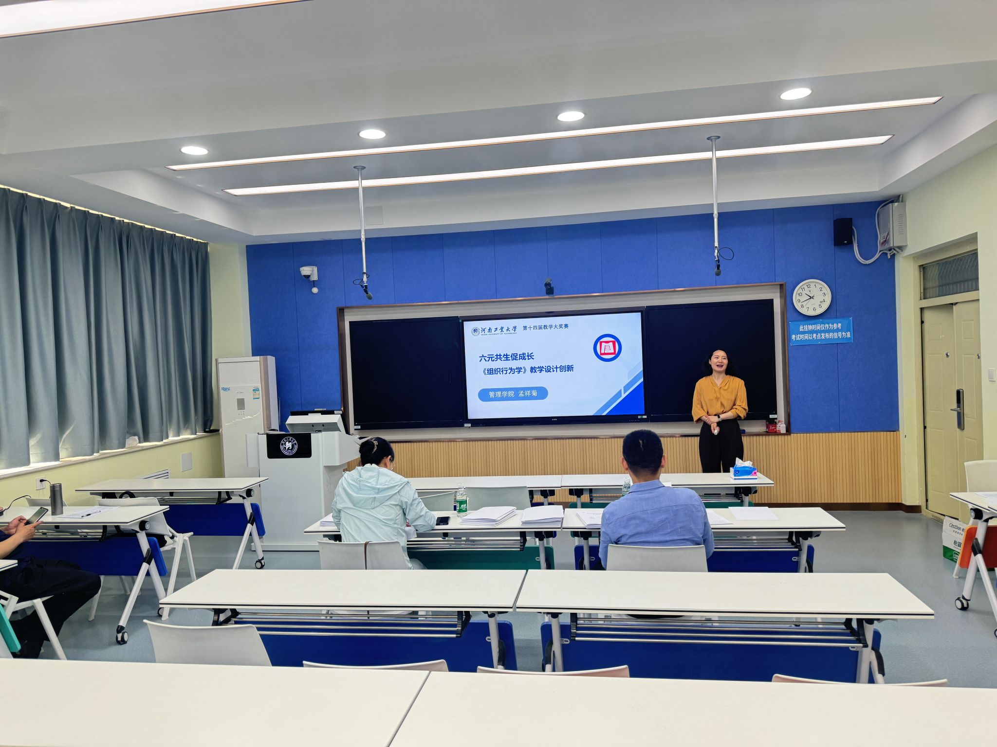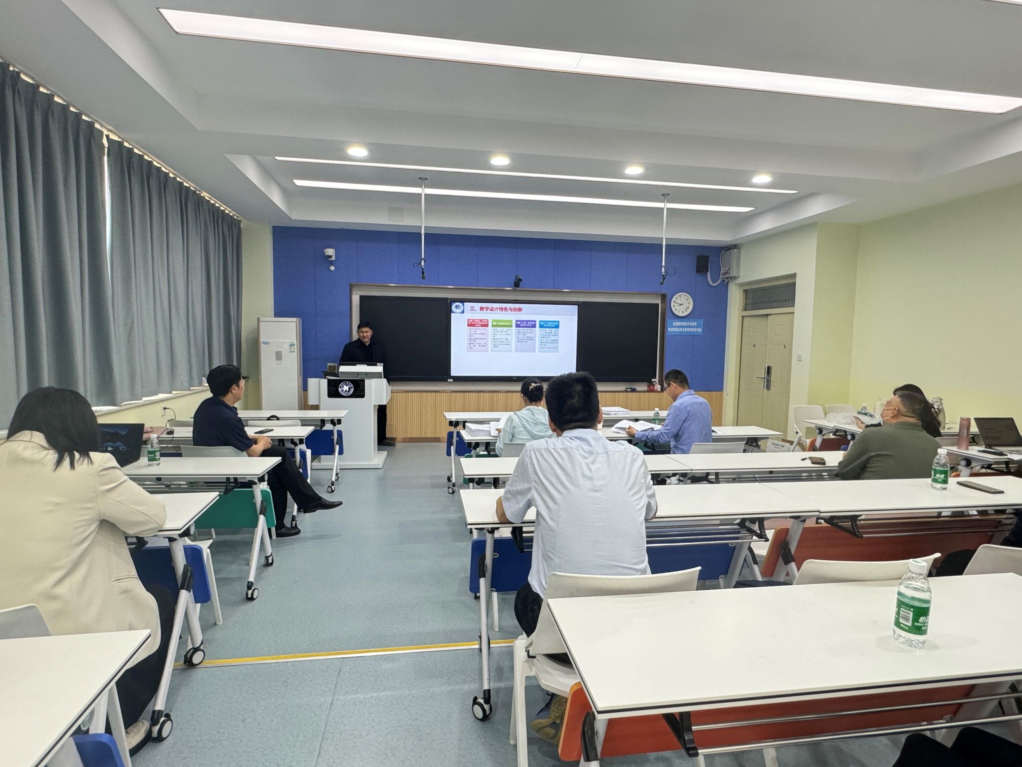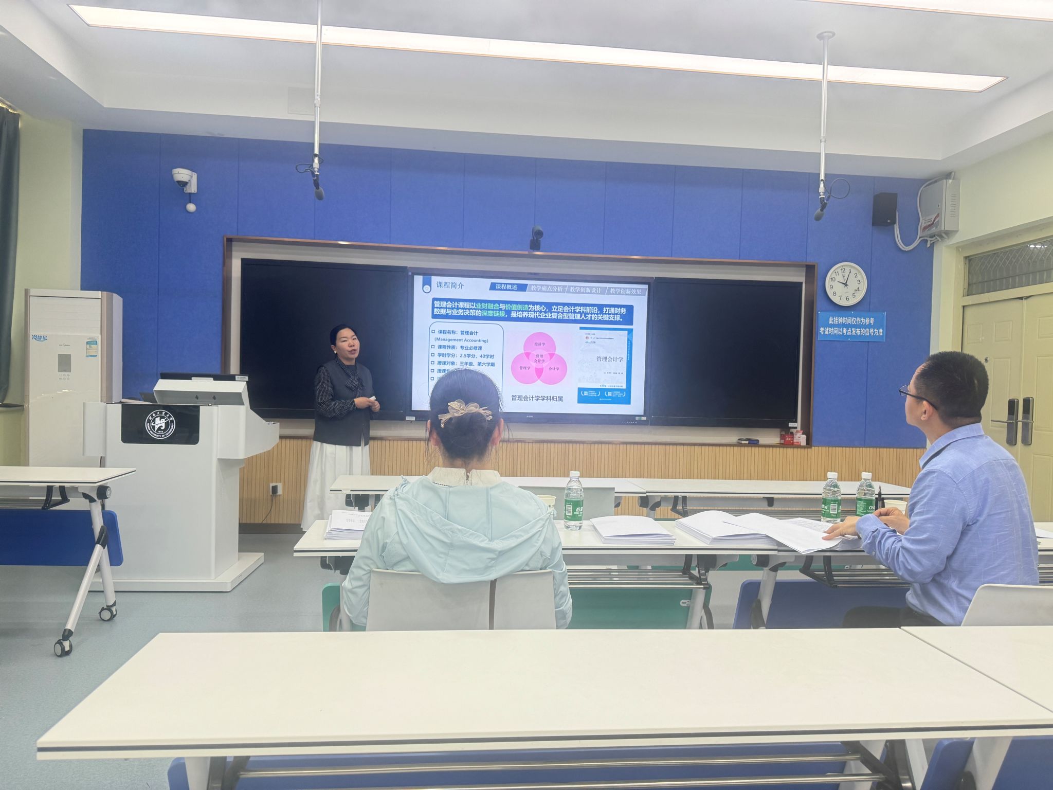 教师团队过硬教学基本功与积极进取风貌。评审专家细致点评,对教学材料、课程设计及教师风采充分肯定,同时针对不足提出了进一步改进建议,为教师成长指明方向。