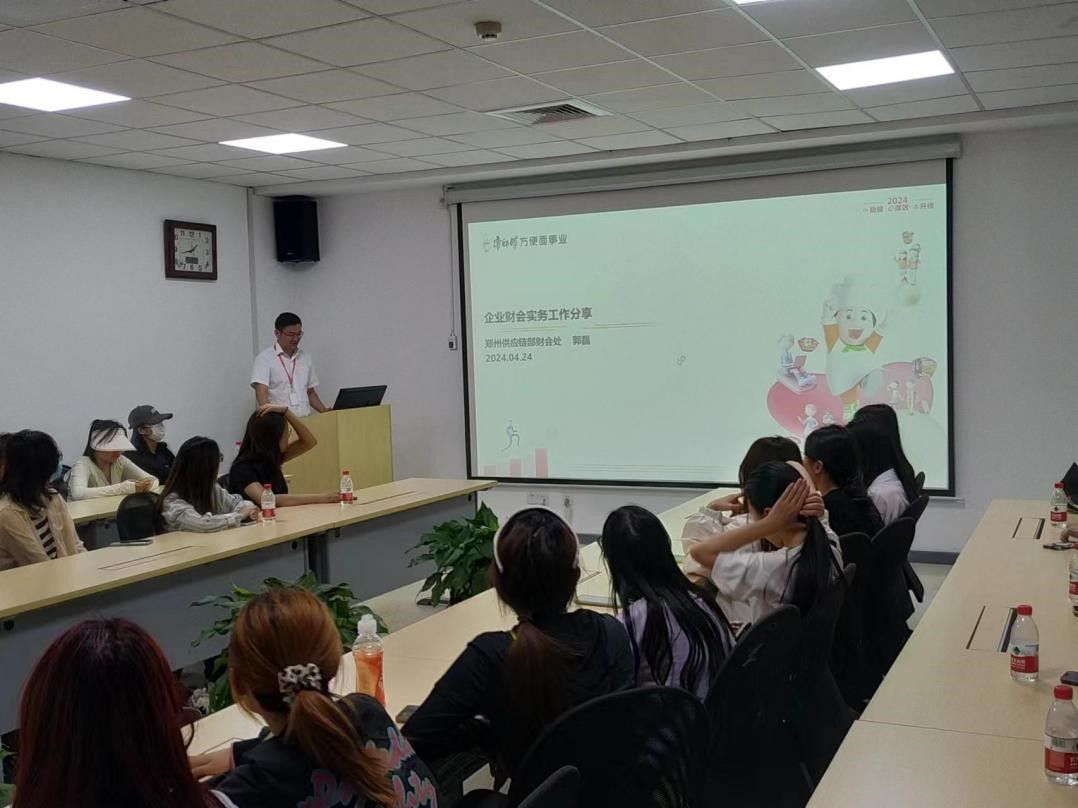 随后,顶益食品财务处的郭磊经理详细介绍了公司财务管理体系、成本控制策略、预算管理流程以及税务筹划等方面的知识,并现场回答了师生们的问题。通过一系列丰富且实用的案例分析,不仅让在场的每一位学生对财务管理的复杂性和重要性有了更加深刻的理解,也激发了他们对未来职业道路的思考与规划。