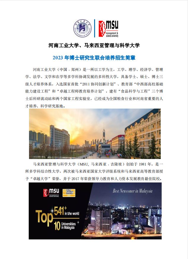 yanetfix 、马来西亚管理与科学大学2023年博士研究生联合培养招生简章