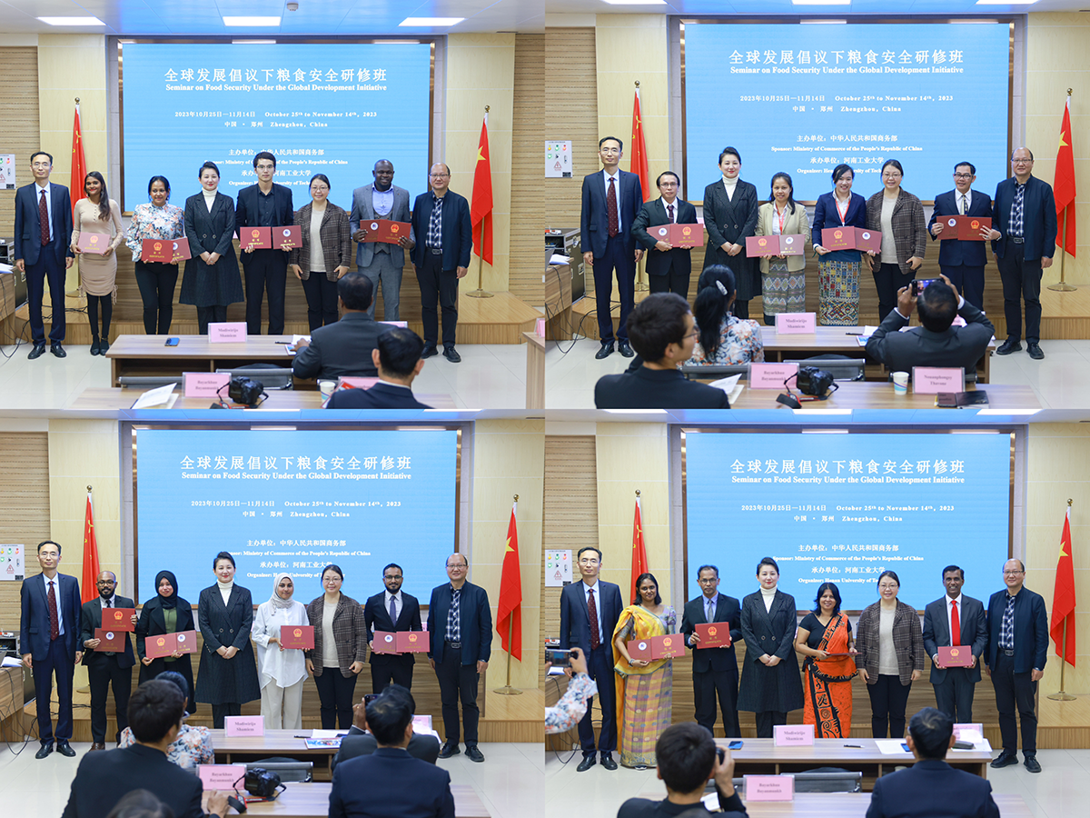 承办的“全球发展倡议下粮食安全研修班”在我校顺利举办。来自马尔代夫、老挝、苏里南、蒙古、卢旺达、斯里兰卡6个国家的16名粮食行业的官员专家参与了研修项目。结合当前全球粮食领域面对的共同问题,以及与会学员的具体需要,研修班在21天里精心筹备了课堂讲座、研讨交流、参观考察、现场教学和文化体验等环节。