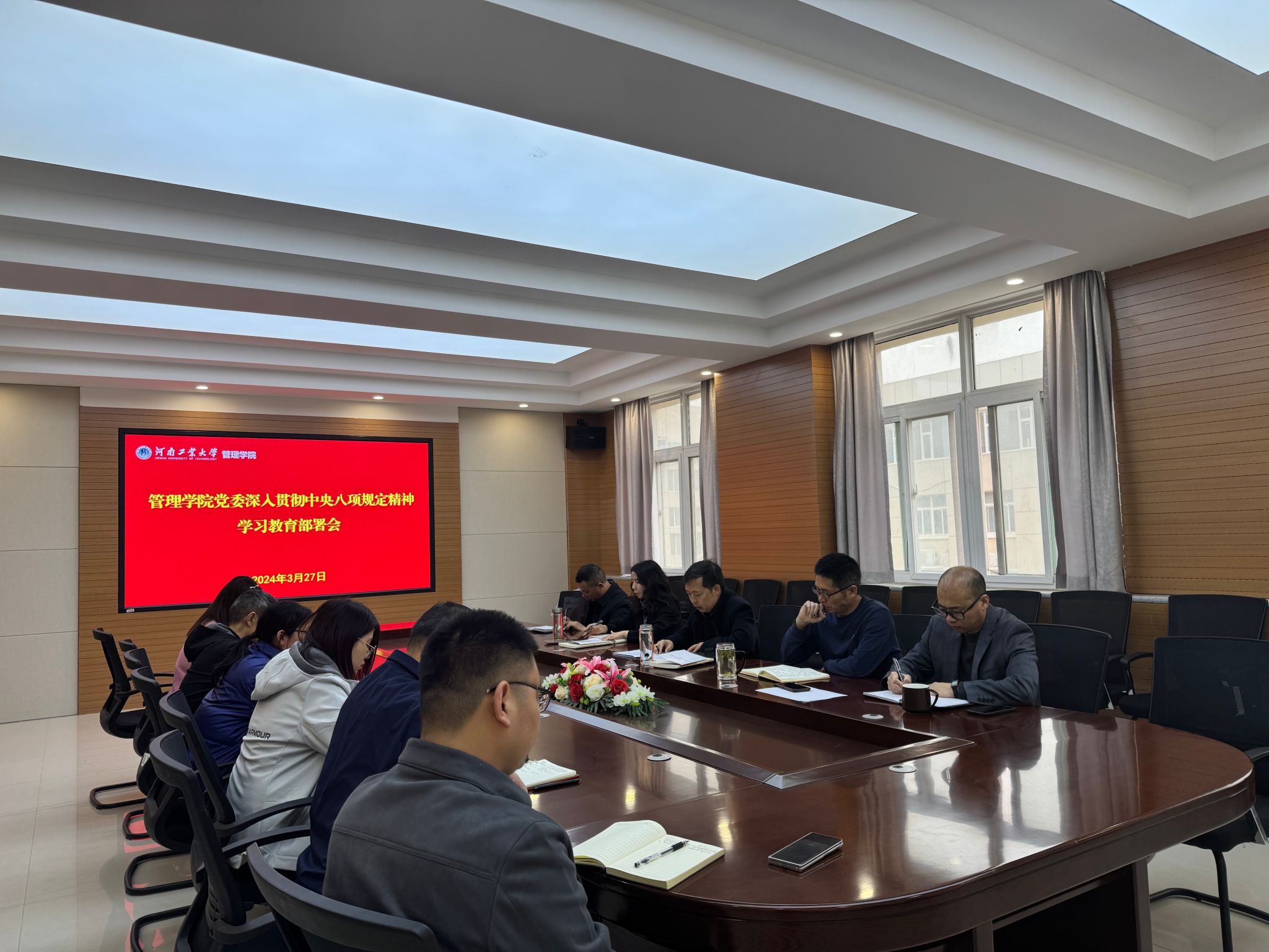 李国仓就学院贯彻落实中央八项规定精神作出部署,并就具体工作提出三点要求:第一,提高政治站位,筑牢思想防线,全体党员干部要始终保持政治清醒,严守党的政治纪律和政治规矩,切实把中央八项规定精神转化为思想自觉和行动自觉,做到内化于心、外化于行。第二,强化学习实效,推动工作落实,各教工党支部要切实发挥战斗堡垒作用,创新学习形式,丰富教育载体,精心组织全体党员参与学习教育活动,确保学习入脑入心、见行见效。第三,健全长效机制,强化责任担当,要层层压实全面从严治党主体责任,完善监督机制,注重制度建设,引导全体教职工立足本职岗位,主动担当作为,共同营造学院风清气正、干事创业的良好政治生态。