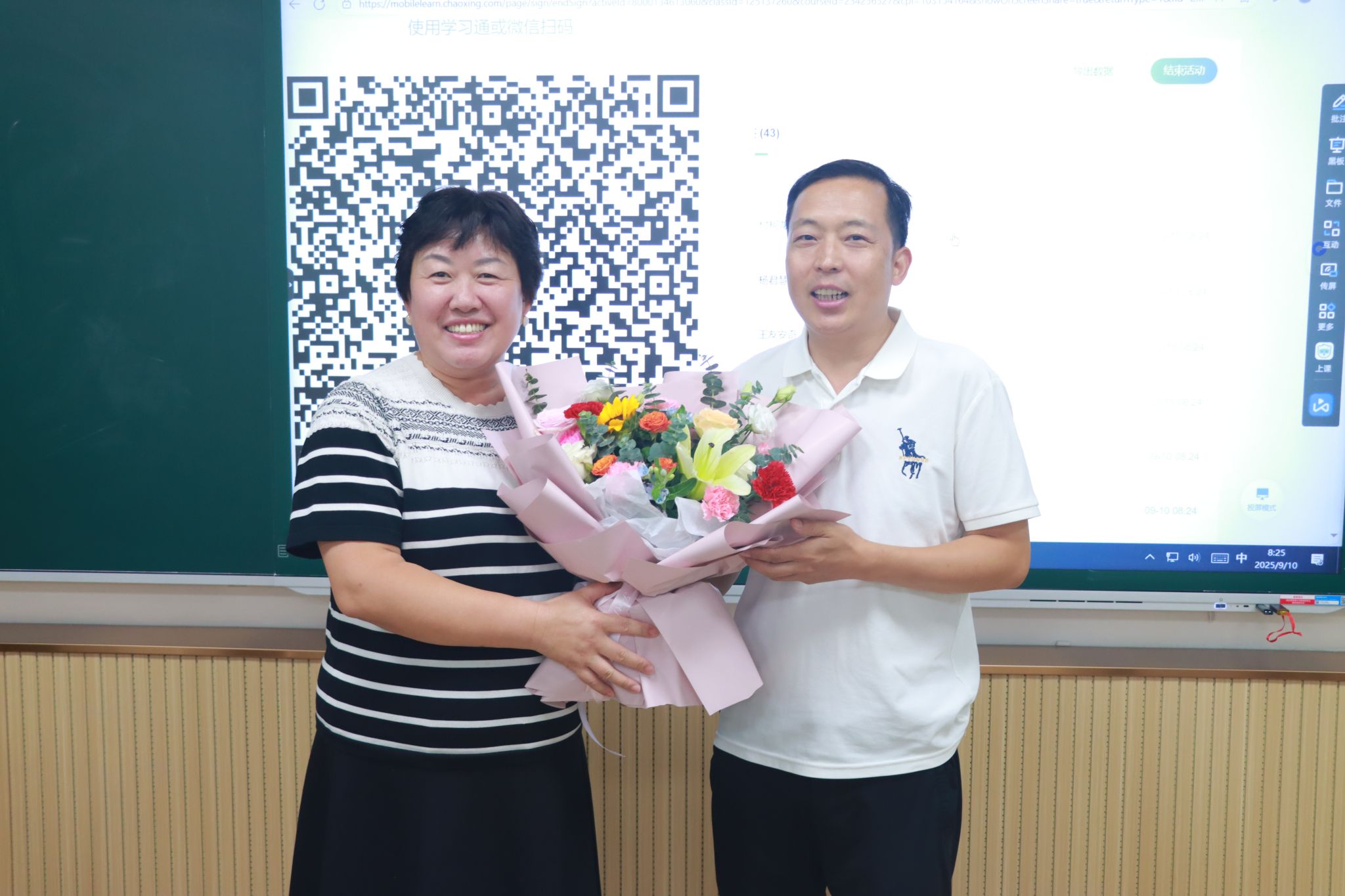 于9月10日组织开展教师节献花活动。学院领导班子亲切慰问各系教师代表,向他们献上鲜花,并致以节日的诚挚问候与美好祝福。