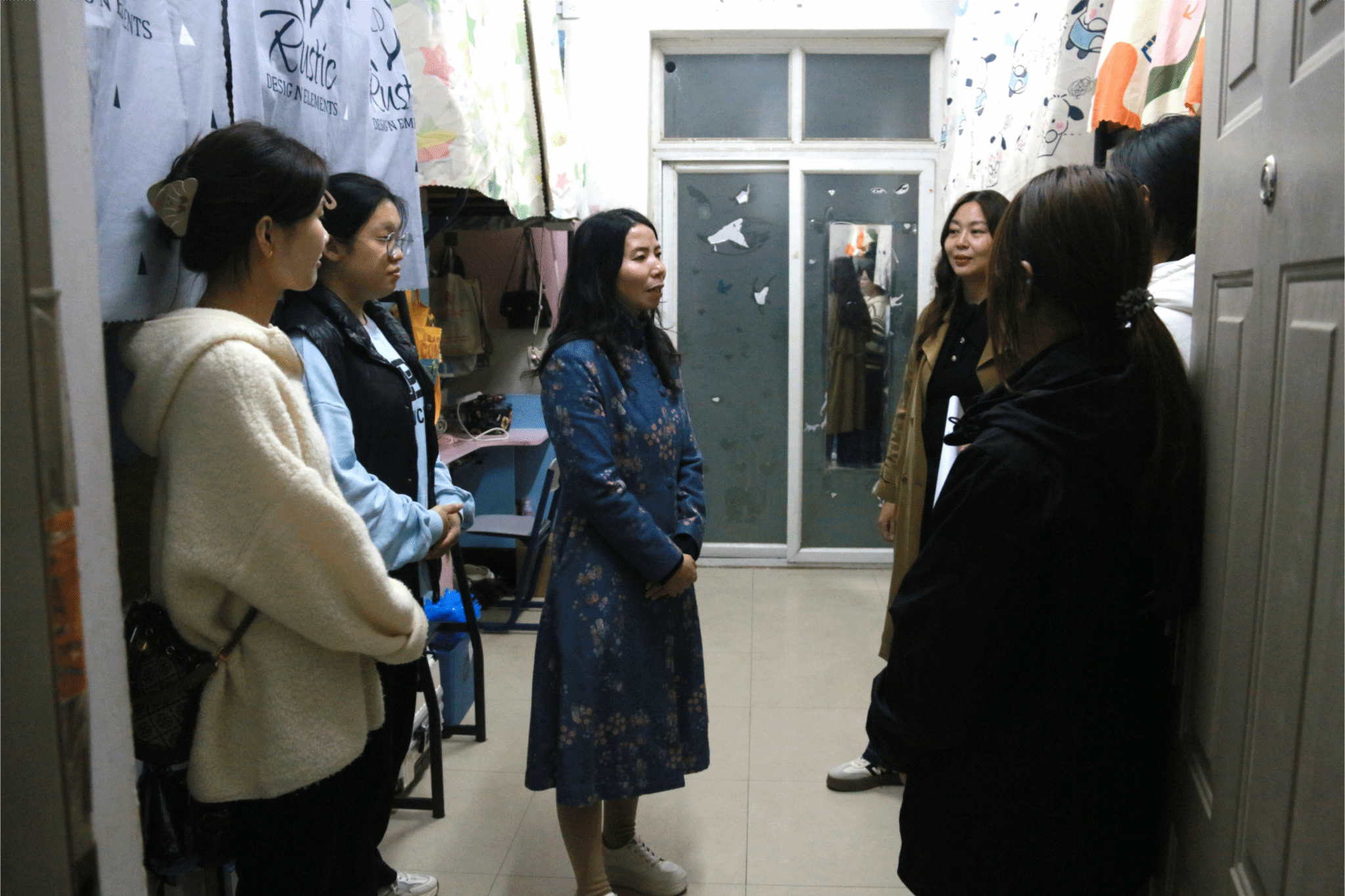党委副书记曹启娥,学工办主任王风云及各年级辅导员深入德园“一站式”学生社区开展学生宿舍走访活动。