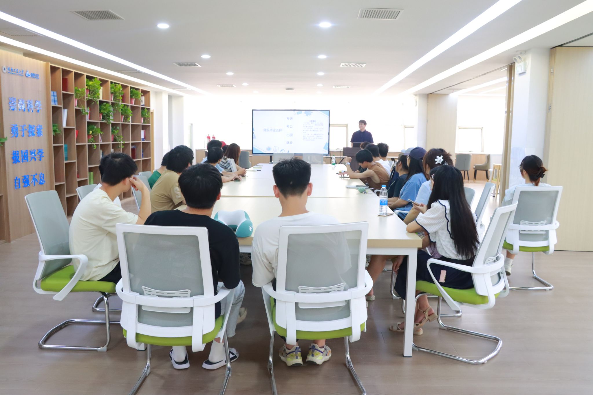 分享会上,裴豪凯以 “应届生求职通关攻略” 为主题,结合自身经历,围绕毕业选择、就业途径、简历制作、面试技巧等内容展开分享。他对比考研、考公、出国与就业的差异,详解各类就业渠道;通过案例分析,传授简历优化与面试应对策略,包括群面、单面及压力面技巧;还着重讲解了求职全程的心态管理和行动方法,帮助大家构建从求职准备到入职衔接的完整知识体系,助力他们在激烈的就业市场中从容破局、顺利通关。