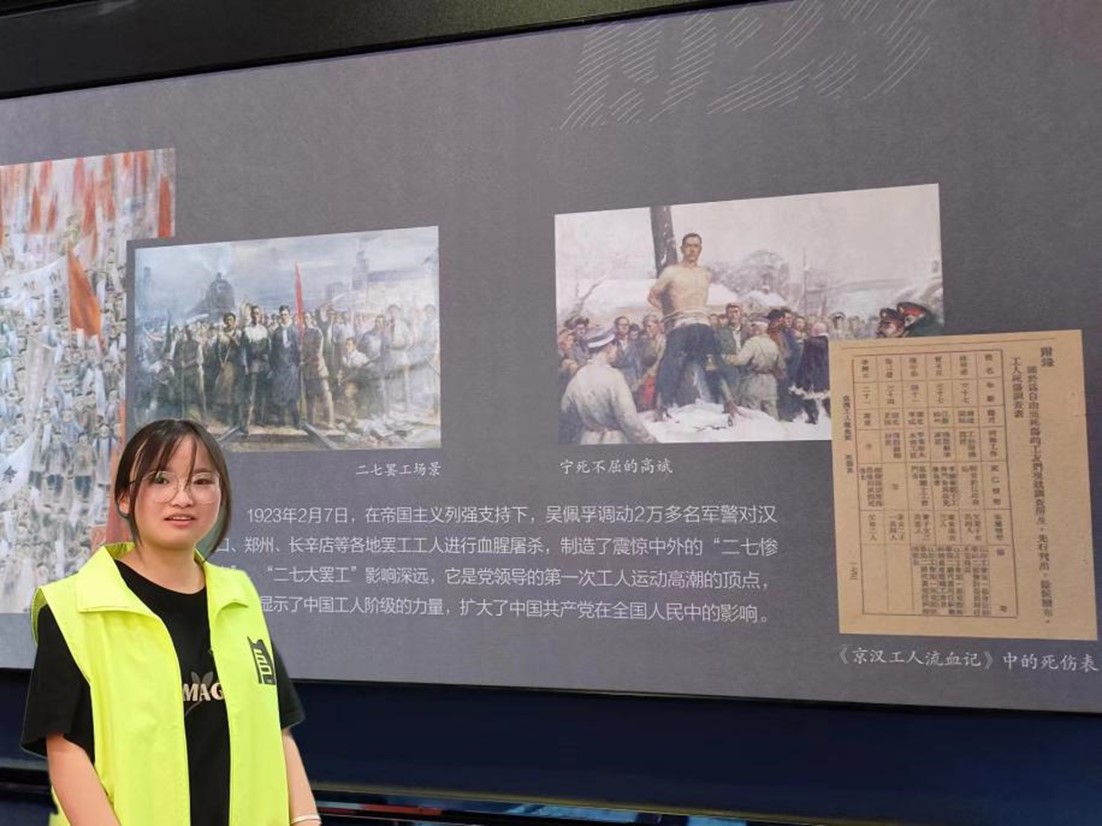 参观后,我们感受到二七纪念塔的建设意义之伟大,领悟了二七塔所折射出来的伟大革命烈士之精神。同时,我们与塔内工作人员讨论了有关二七大罢工的历史问题,也向广场上的群众介绍了我们刚刚学习到的关于这段历史的内容,让更多人民群众学习和了解关于二七塔的历史故事。