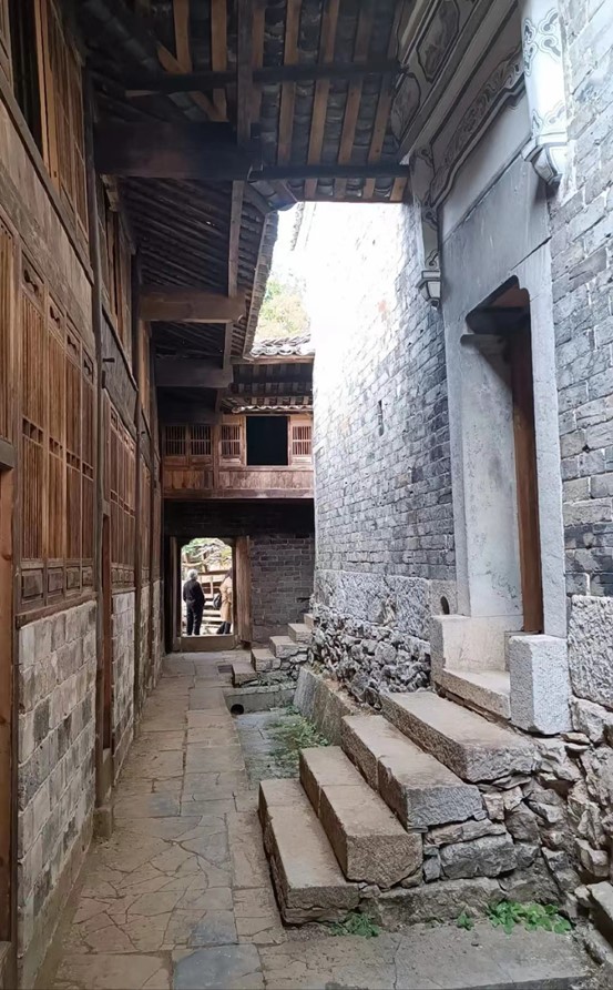 在调研过程中同学们仔细参观古居的每一个角落。古老的砖墙、精美的木雕、斑驳的石板路,仿佛都在诉说着过去的故事。他们用心感受着古人的智慧和创造力,不时驻足观察、记录,力求深入了解古民居的建筑风格、历史沿革以及文化价值。