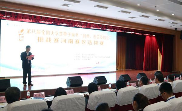 5月26日,由我院承办的第八届全国大学生电子商务“创新、创意及创业”挑战赛河南省赛区决赛在我校莲花街校区举行。来自省内19所高校的41支参赛队伍、近300名学生,在比赛中展示创新意识、创意思维、创业能力及团队协同实战精神。我校党委常务副书记王玉斌观摩了总决赛并在闭幕式上致辞。