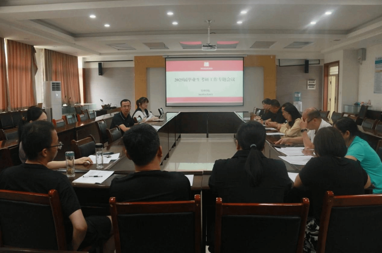 在3543会议室召开2025届毕业生考研工作专题会议,学院党委副书记魏涛,各系系主任、党支部书记,全体毕业班班主任老师以及2021级辅导员方园参加会议,会议由魏涛主持。
