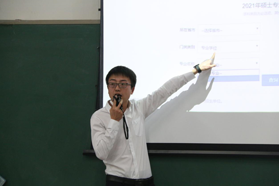 会上,吴若旻针对当前考研形势,强调备考需要扎实的专业基础和坚强意志品质,希望同学们能够坚定考研之路、追逐青春梦想,给予同学们极大鼓励。随后,周常江做精彩细致的动员讲话,他结合自身经历就考研专业与学校选择、备考复习做了详尽介绍,为同学们提供时间分配与知识储备参考范例,建议大家要结合自身学习情况和兴趣选择最适合自己的专业与院校。此外,他提醒同学们要认清形势、知己知彼,切忌好高骛远、懒散轻敌,运用良好的战略与战术,方可一战即胜。