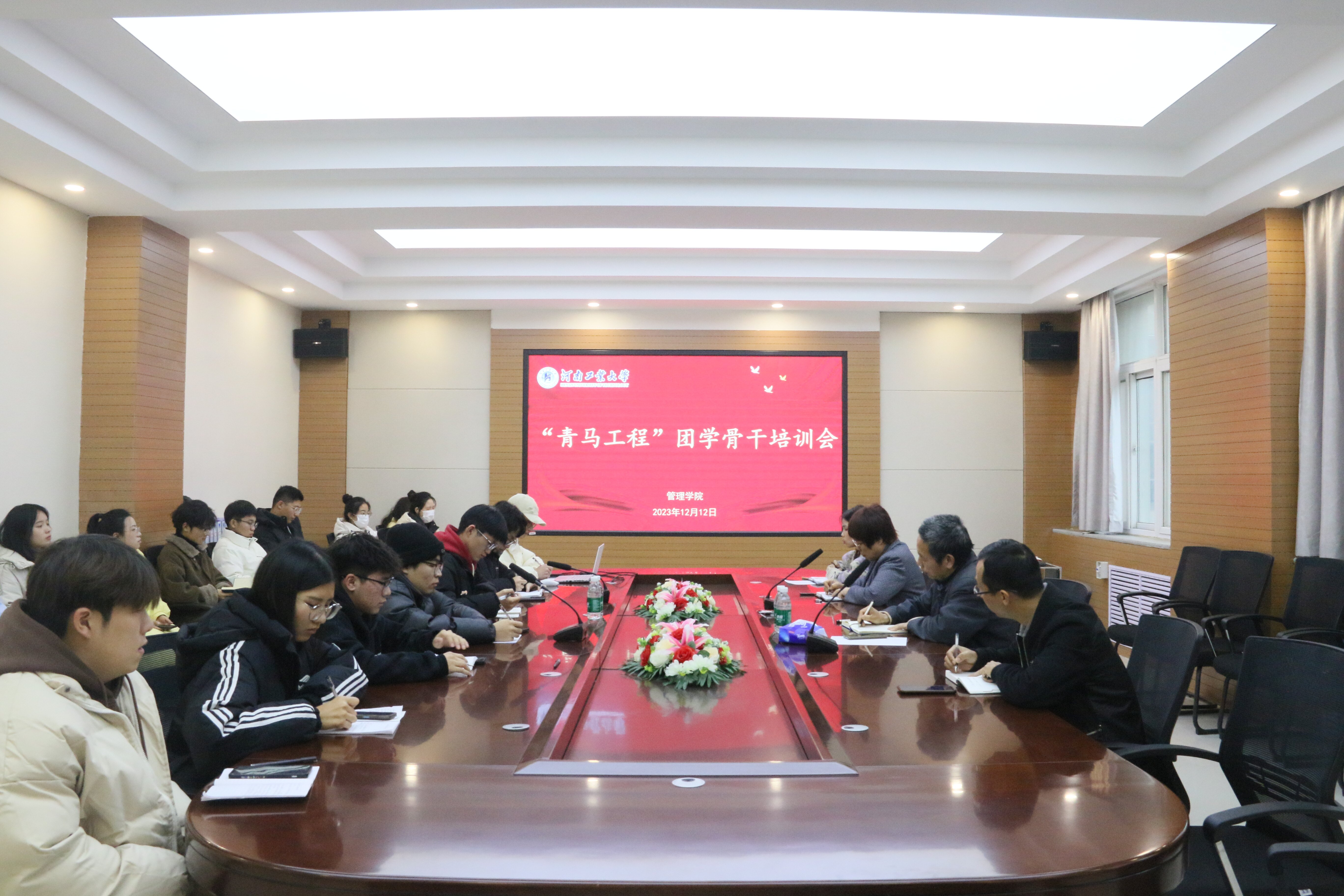 在3558会议室召开“青马工程”团学骨干培训会,学院党委书记魏明侠、院长杨艳萍、党委副书记魏涛、团委副书记郑媛媛以及学院团学骨干参加了会议。会议由郑媛媛主持。