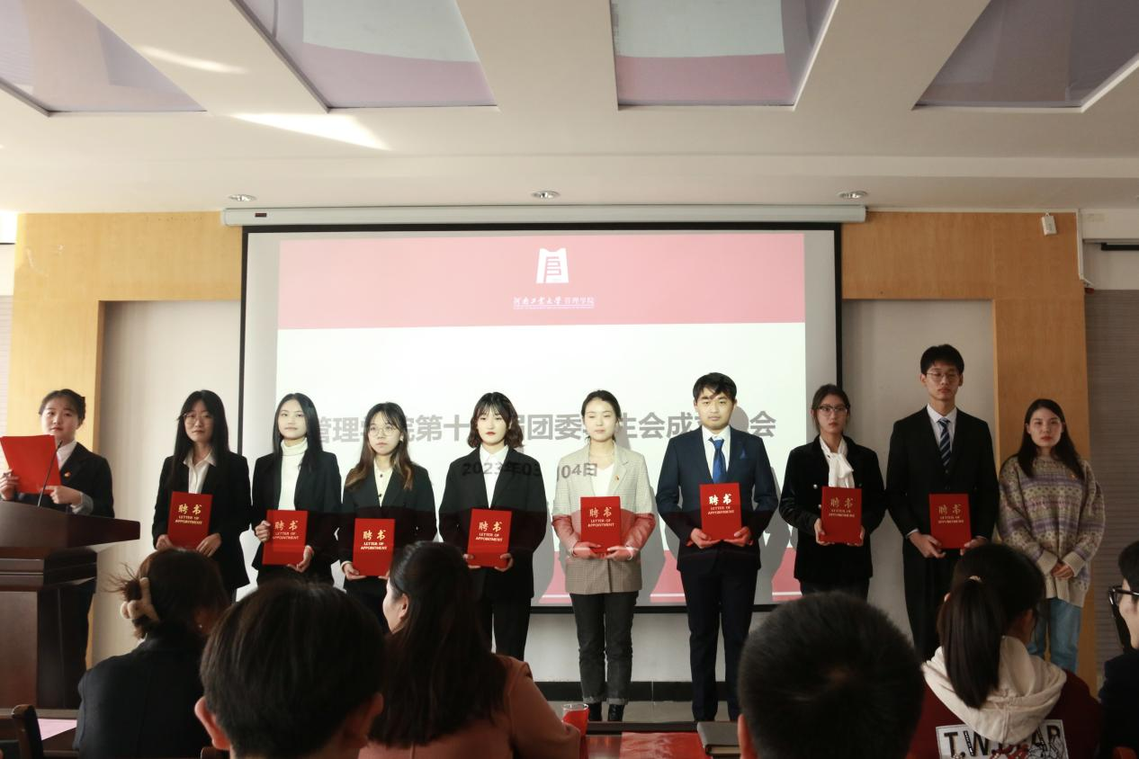 在3543会议室召开全体学生干部会议暨第十九届团委学生会成立大会。学院党委副书记魏涛、学工办主任王风云、团委副书记郑媛媛、21级辅导员方园、20级辅导员肖雪川及第十九届团委学生会全体成员参加本次会议。